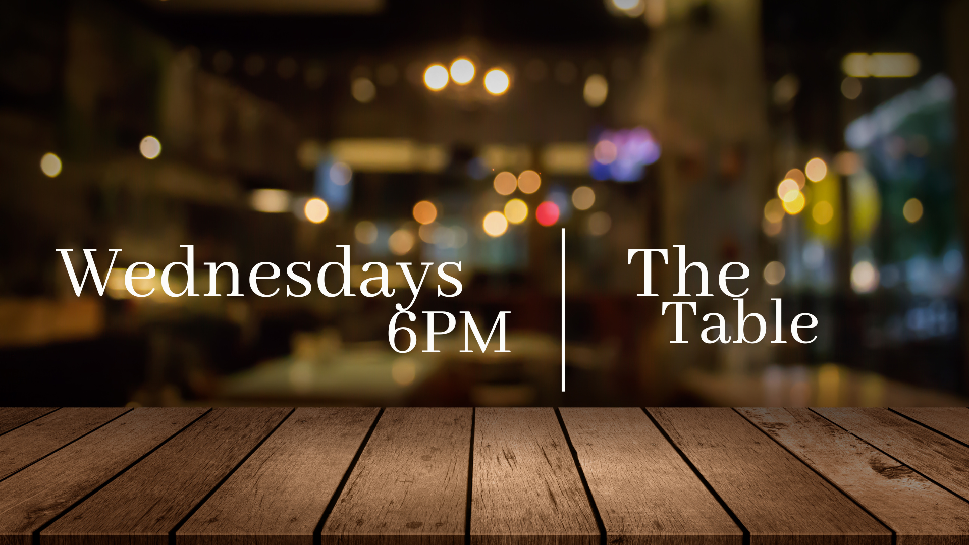 "Join us every Wednesday evening for a refreshing time of growing in God's Word and building meaningful community. Our Wednesday nights are centered on Scripture and fellowship—gathering at the Table to deepen our unity, strengthen our walks with Christ, and become the kind of community that transforms the world around us. All are welcome!"